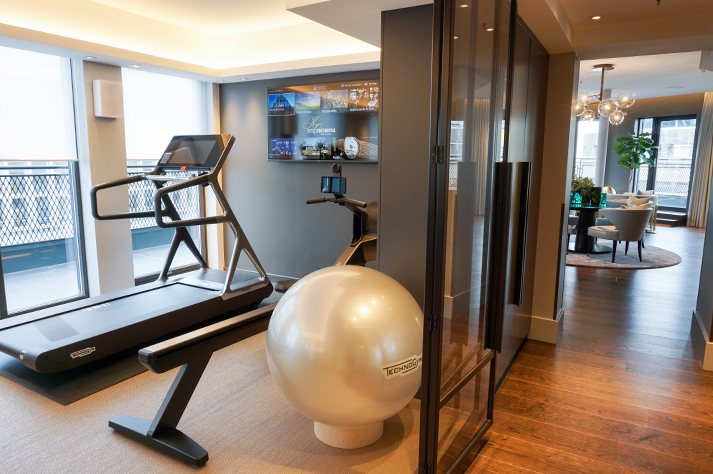 Downstairs you have your own private Fitness Studio - equipped with an excellent selection of the very best from TechnoGym. Catch your favourite television programme while you get your cardio done on the touch screen treadmill or rowing machine. Or connect to the sound system to enjoy your own music during your free weights workout.