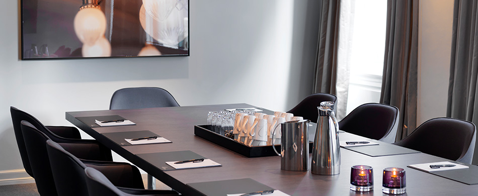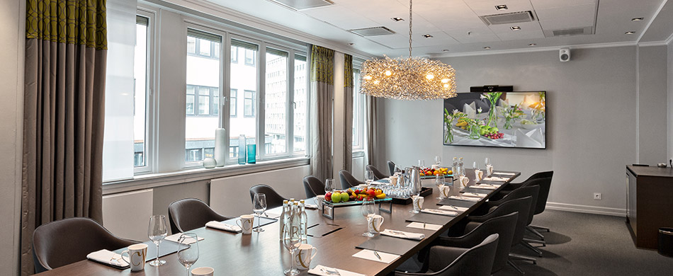 De store vindusflatene, den flotte moderne lysekronen og de behagelige stolene setter den optimale rammen for et godt møte eller en hyggelig middag. Rommet er også tilknyttet en elegant lobby med dype sofaer og stoler der det er mulig å puste ut mellom samtalene og avgjørelsene. Mat og drikke kan serveres i møterommet, og dere kan velge om dere vi spise lunsjen på møterommet eller i Theatercaféen.