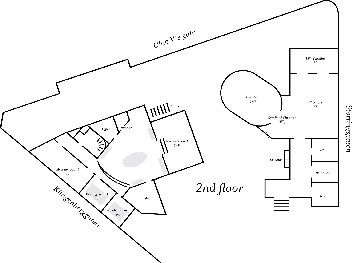 | Caroline | 80 | 40 | 150 (småbord) | 200 | A + B | 200 |